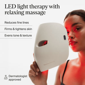 TheraFace Mask Glo is a dermatologist-approved, FDA-cleared LED mask that combines red, red + infrared, and blue light with a relaxing scalp massage for glowing, healthier-looking skin.